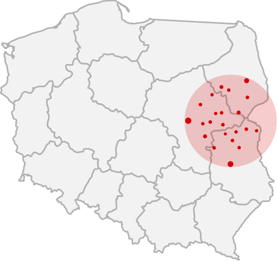 Działamy na obszarze województwa mazowieckiego, podlaskiego i lubelskiego: